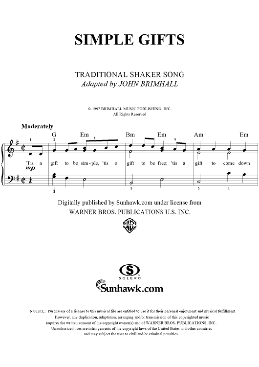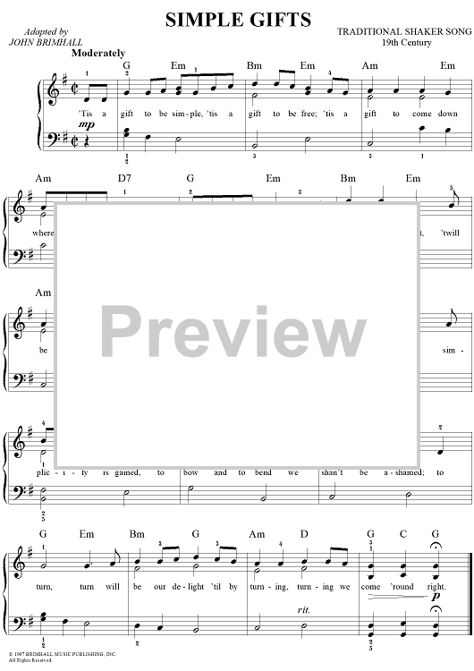 Digital Sheet Music for Simple Gifts by John Brimhall, Traditional scored for Easy Piano/Vocal; id:261825