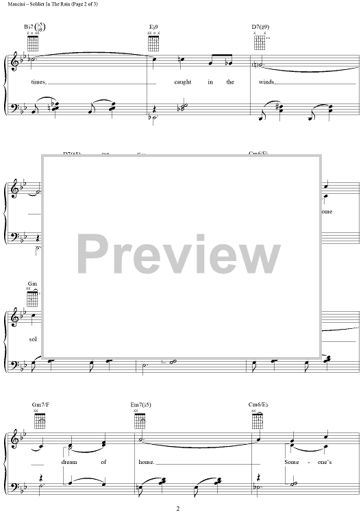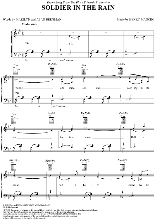 Digital Sheet Music for Soldier in the Rain by Henry Mancini, Alan Bergman, Marilyn Bergman scored for Piano/Vocal/Chords; id:116871
