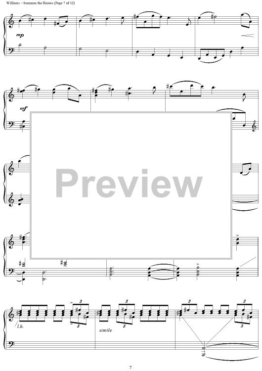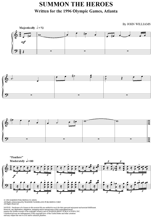 Digital Sheet Music for Summon the Heroes by John Williams scored for Piano Solo; id:292413