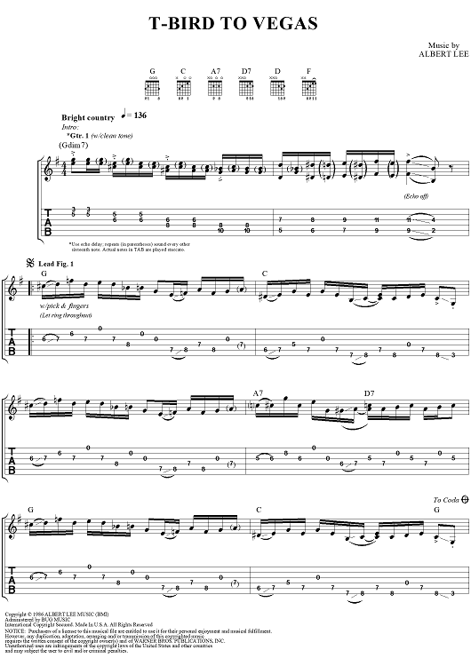 Digital Sheet Music for T-Bird to Vegas by Albert Lee scored for Guitar Tab; id:250740