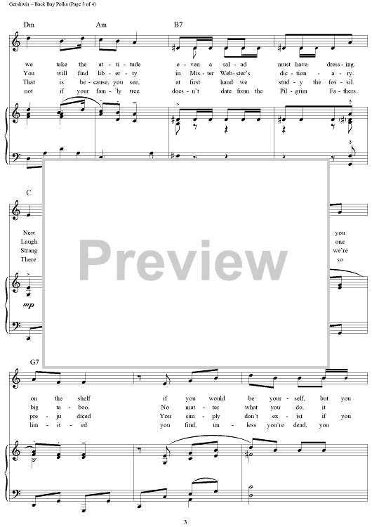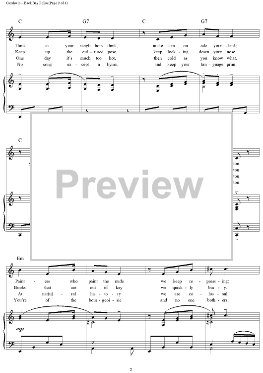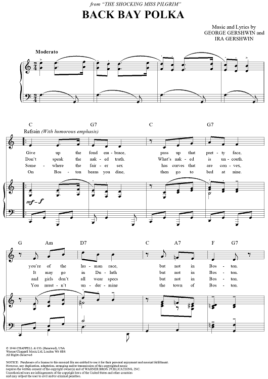 Digital Sheet Music for The Back Bay Polka by George Gershwin, Ira Gershwin scored for Piano/Vocal/Chords; id:268648