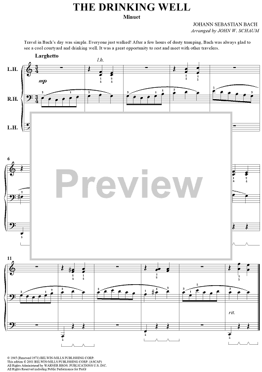 Digital Sheet Music for The Drinking Well (Minuet) by John W. Schaum, Johann Sebastian Bach scored for Piano Solo; id:293066