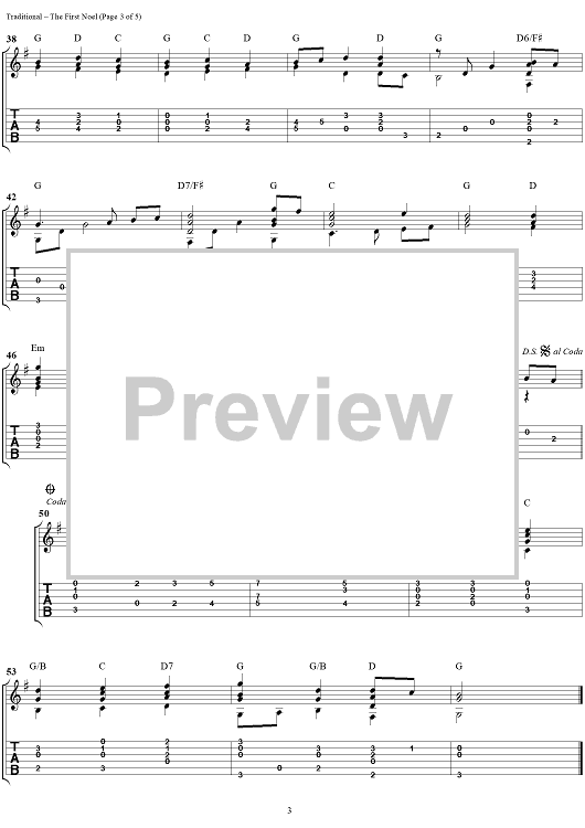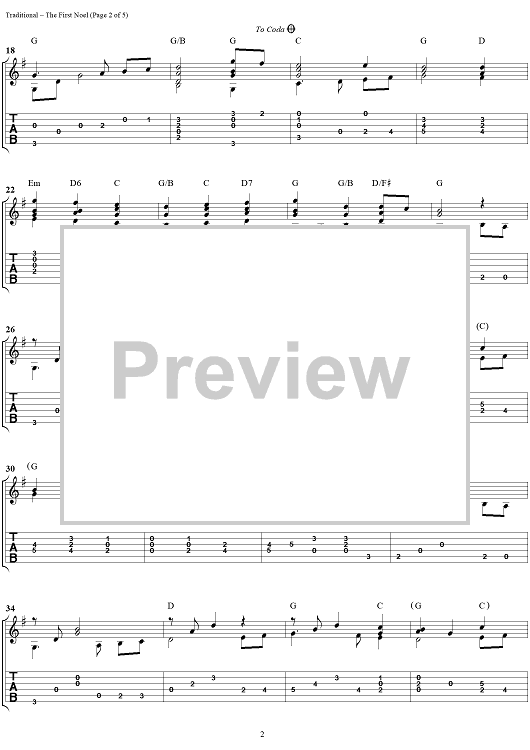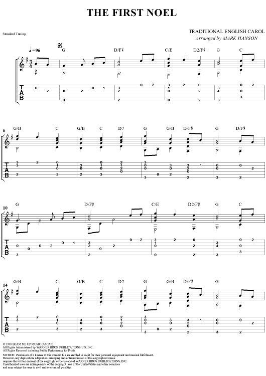 Digital Sheet Music for The First Noel by Mark Hanson, Traditional scored for Guitar Tab; id:260934