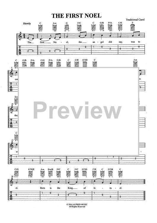 Digital Sheet Music for The First Noel by Traditional Carols scored for Easy Guitar Tab/Vocal/Chords; id:463653