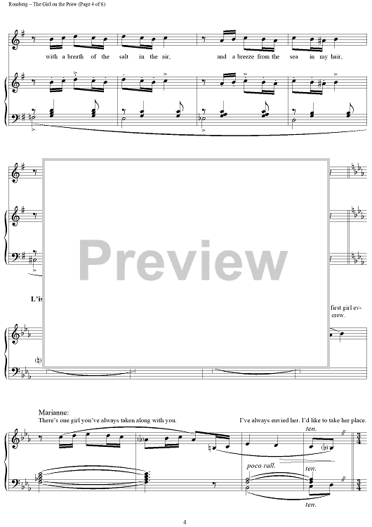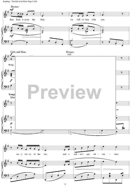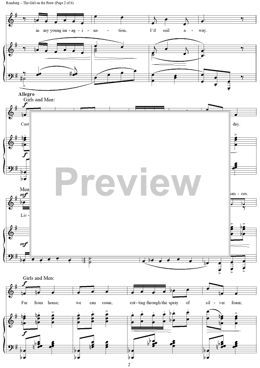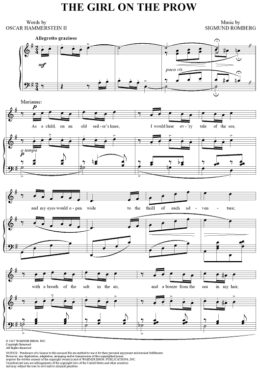 Digital Sheet Music for The Girl on the Prow by Sigmund Romberg, Oscar Hammerstein II scored for Piano/Vocal; id:359421