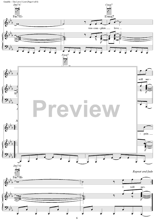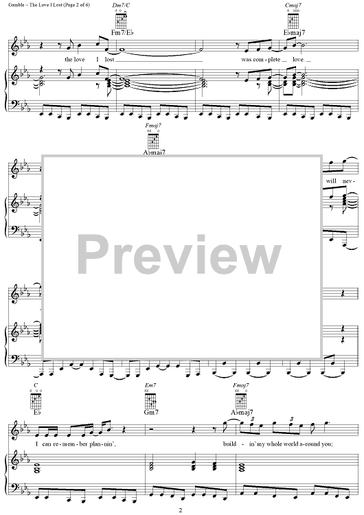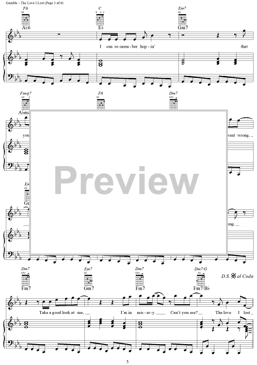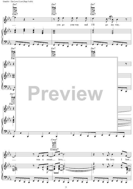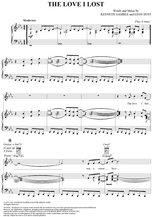 Digital Sheet Music for The Love I Lost by Leon Huff, Harold Melvin and the Blue Notes, Kenneth Gamble scored for Piano/Vocal/Chords; id:321268