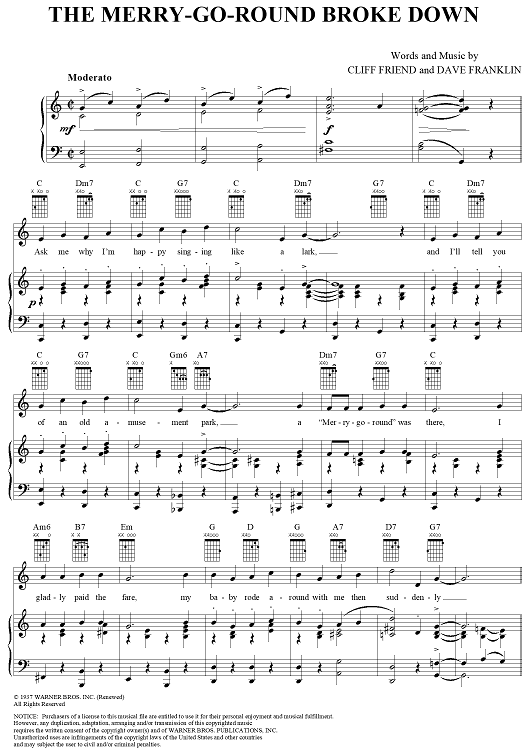 Digital Sheet Music for The Merry-Go-Round Broke Down by Cliff Friend, Dave Franklin, Merry Melodies scored for Piano/Vocal/Chords; id:286662