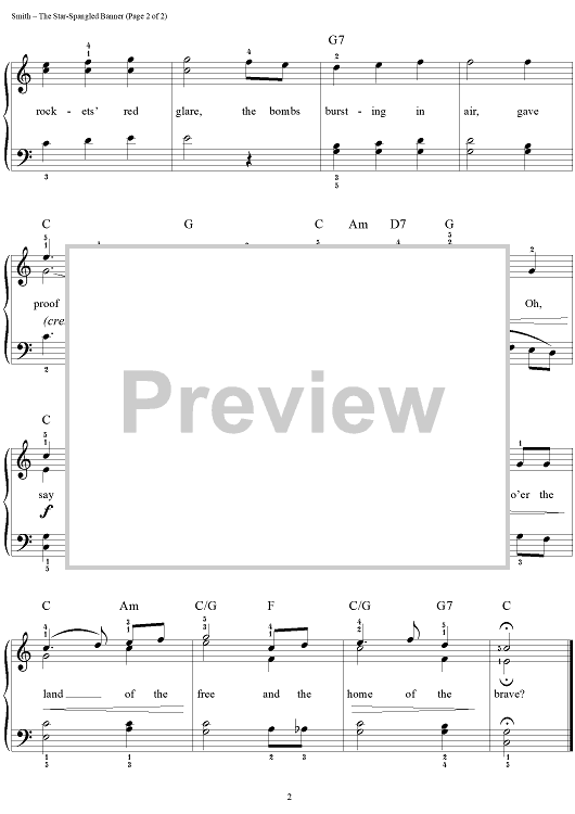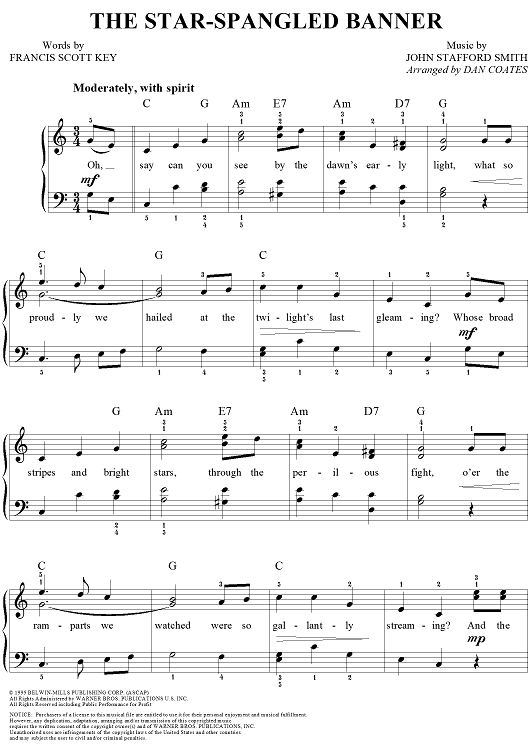 Digital Sheet Music for The Star-Spangled Banner by John Stafford Smith, Francis Scott Key, Dan Coates scored for Easy Piano/Vocal; id:284482