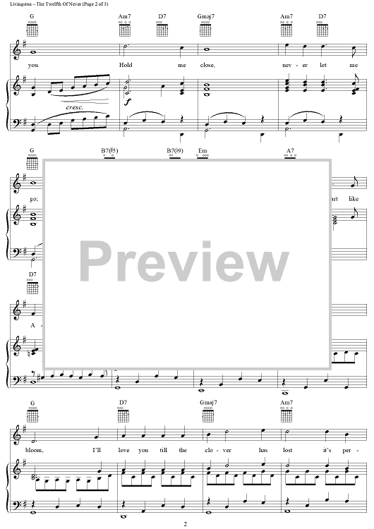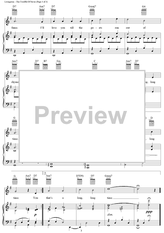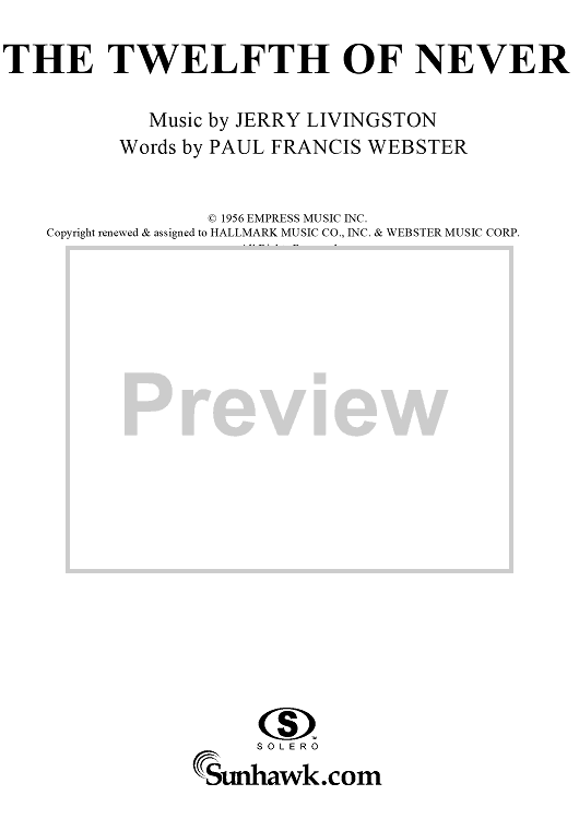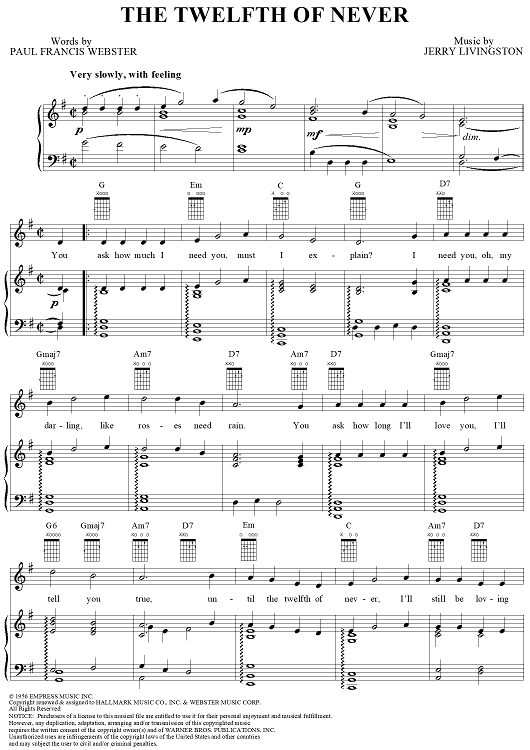 Digital Sheet Music for The Twelfth of Never by Johnny Mathis, Jerry Livingston, Paul Francis Webster scored for Piano/Vocal/Chords; id:114305