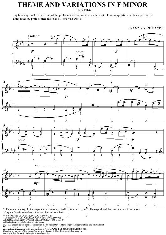 Digital Sheet Music for Theme and Variations in F Minor (HobXVII/6) by Franz Joseph Haydn, John W. Schaum scored for Piano Solo; id:297612