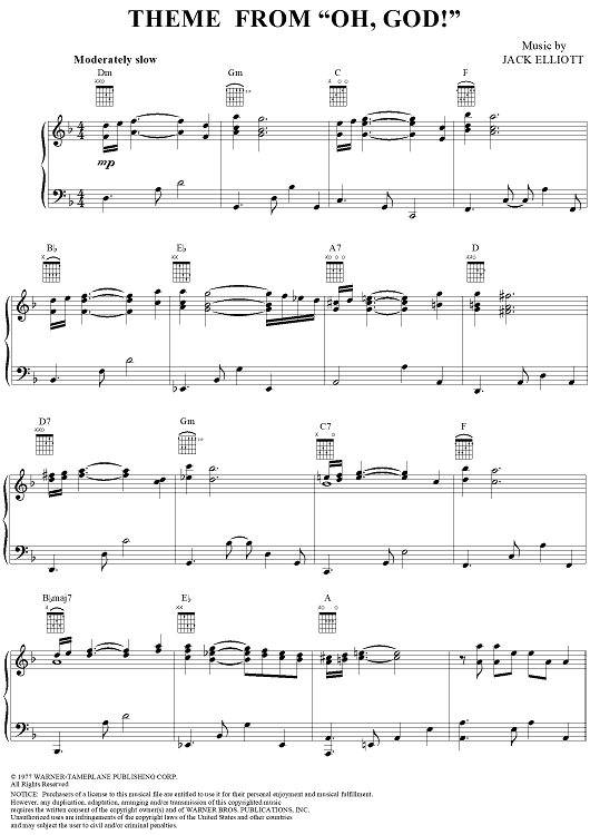 "Theme from Oh, God!" Sheet Music by Jack Elliott