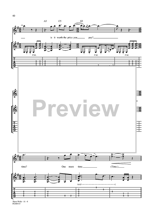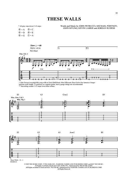 Digital Sheet Music for These Walls by John Myung, Michael Portnoy, Dream Theater, John Petrucci, Jordan Rudess, James LaBrie scored for Guitar Tab/Vocal; id:360018