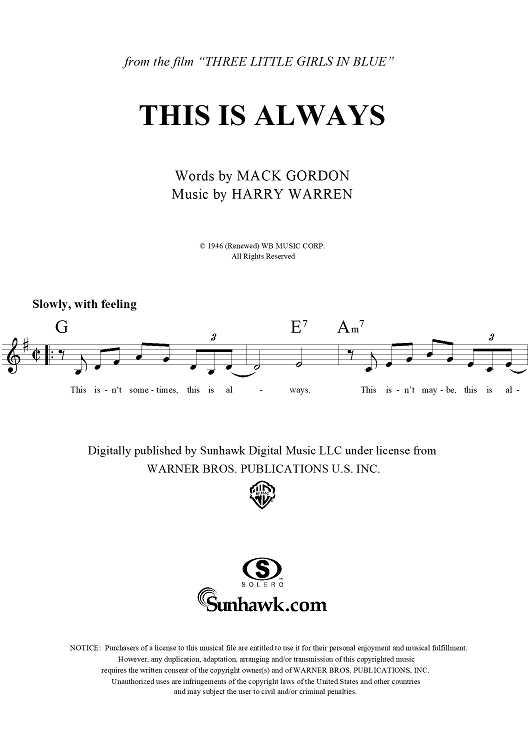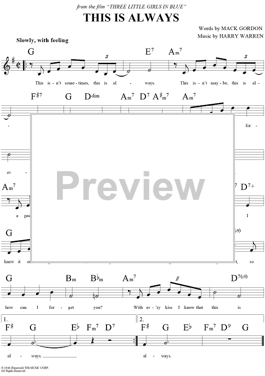 Digital Sheet Music for This is Always by Harry Warren, Mack Gordon scored for Lead Sheet; id:264440
