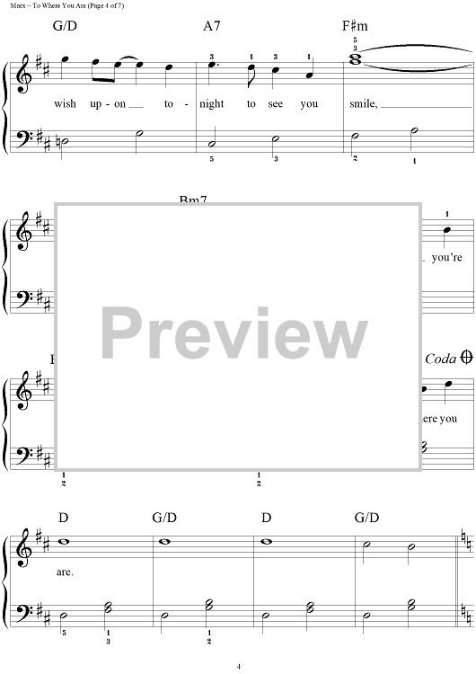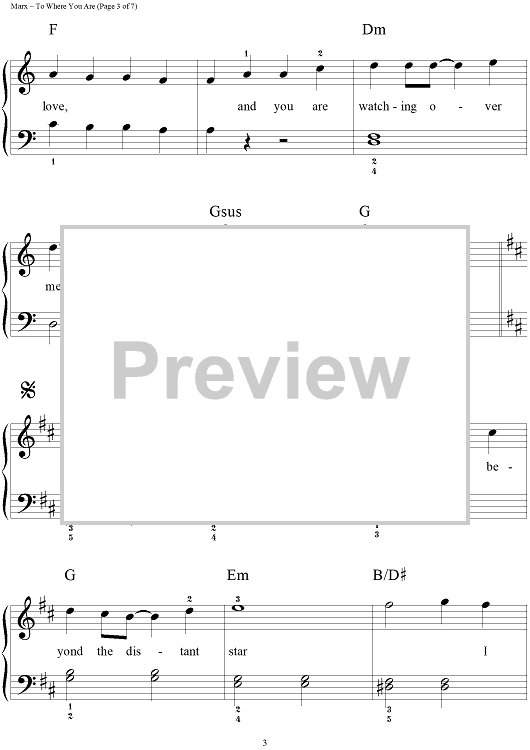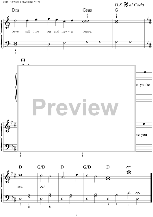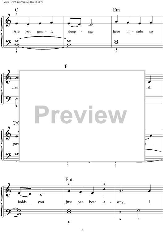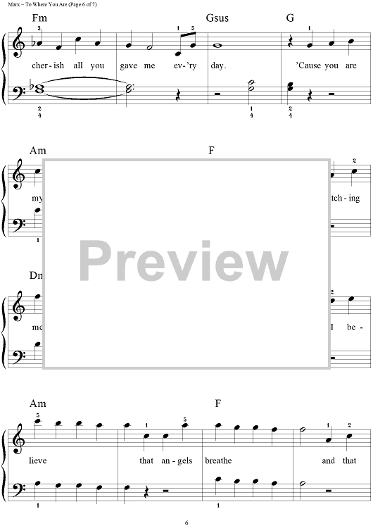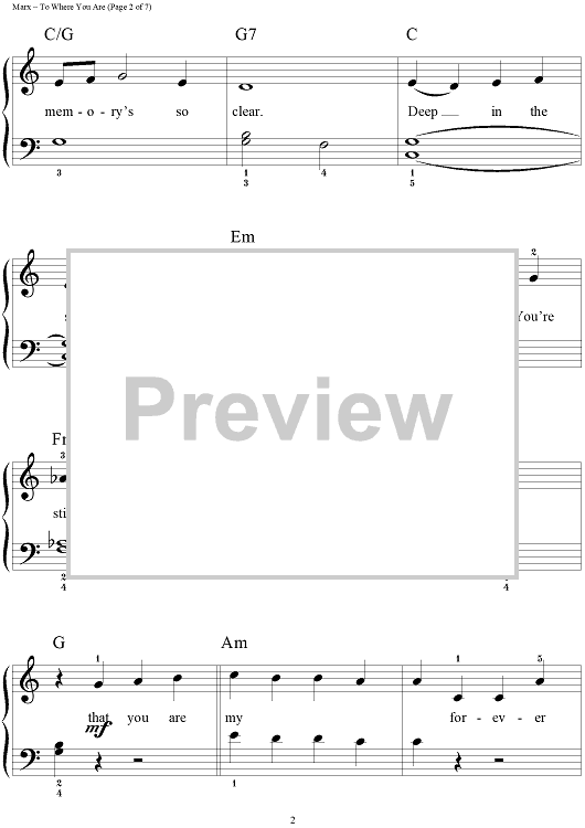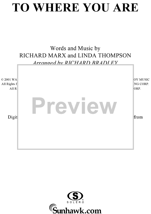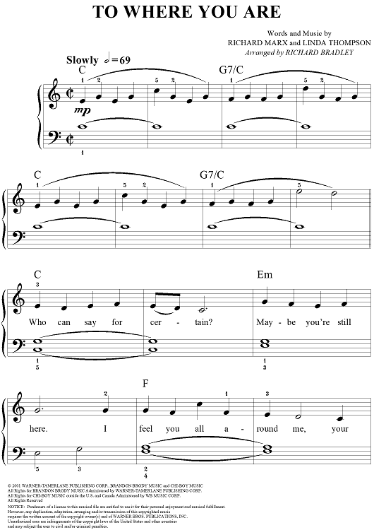 Digital Sheet Music for To Where You Are by Richard Marx, Linda Thompson, Richard Bradley, Josh Groban scored for Big Note Piano; id:291248