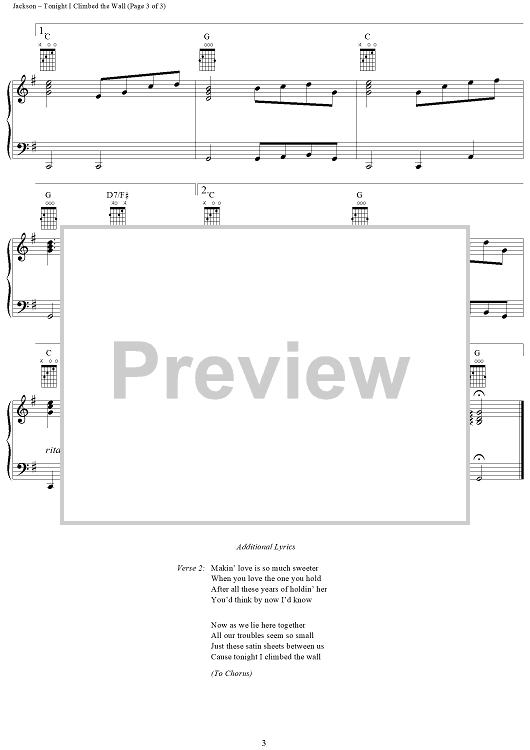 "Tonight I Climbed the Wall" Sheet Music by Al Jackson Jr