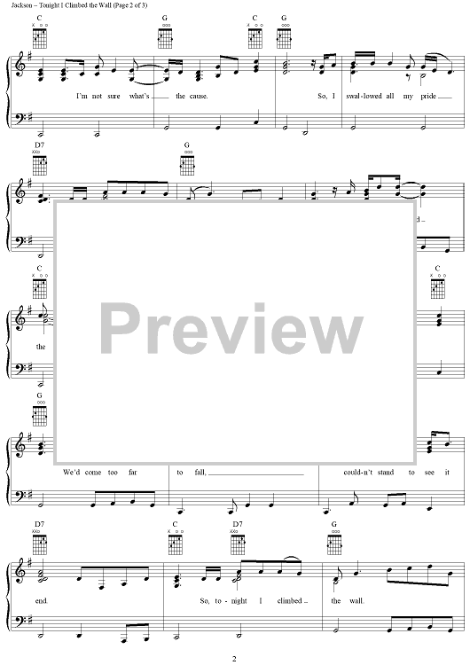 Digital Sheet Music for Tonight I Climbed the Wall by Al Jackson Jr scored for Piano/Vocal/Chords; id:241273
