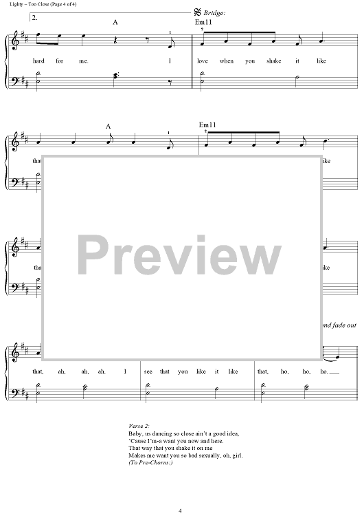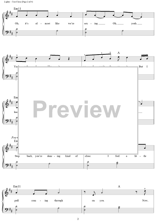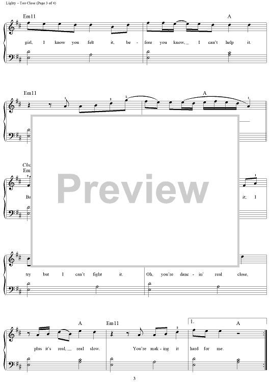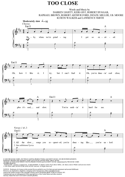 Digital Sheet Music for Too Close by Next scored for Easy Piano/Vocal; id:116066