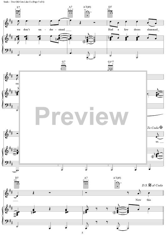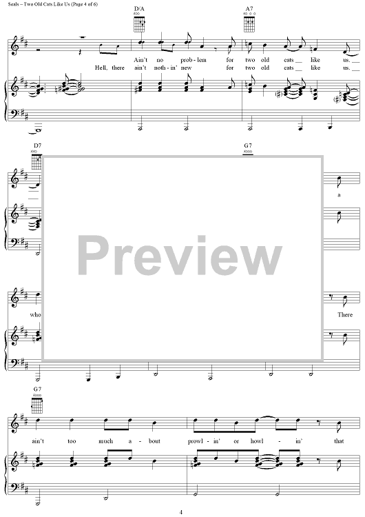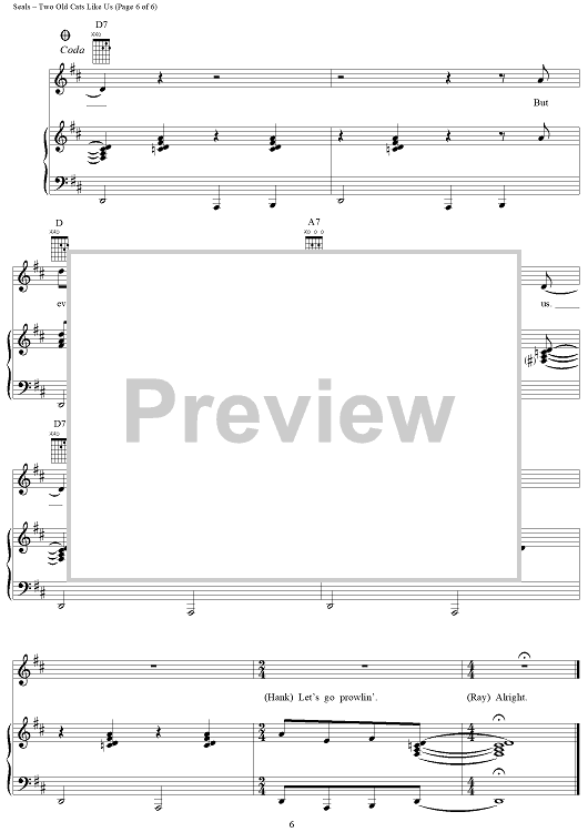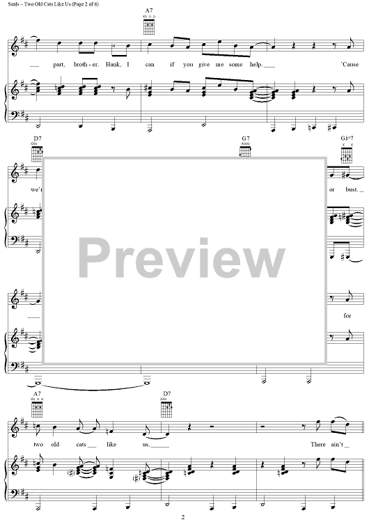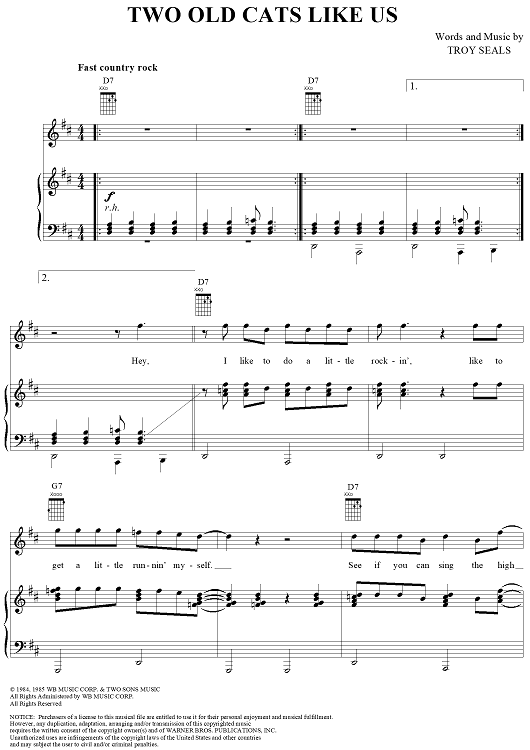 Digital Sheet Music for Two Old Cats Like Us by Hank Williams, Troy Seals, Ray Charles scored for Piano/Vocal/Chords; id:256128
