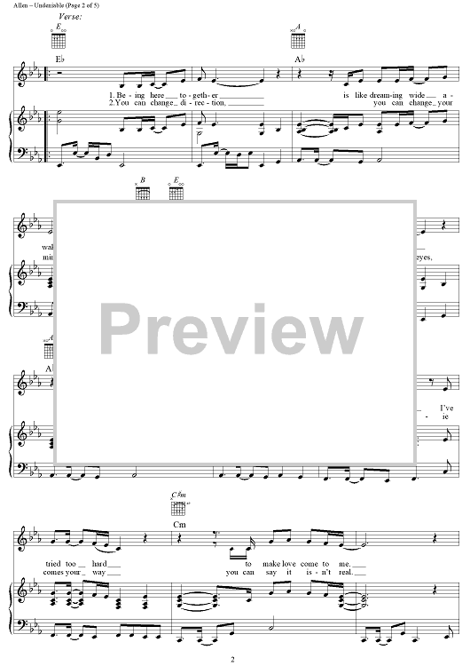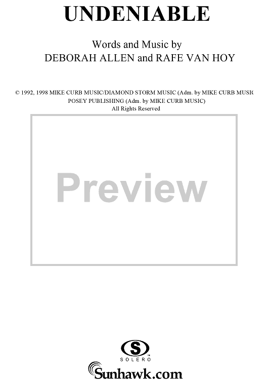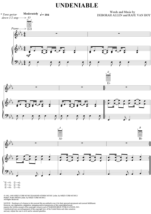 Digital Sheet Music for Undeniable by LeAnn Rimes, Deborah Allen, Rafe Van Hoy scored for Piano/Vocal/Chords; id:277582