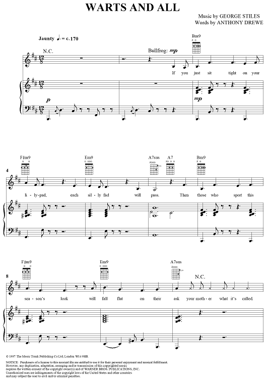 Digital Sheet Music for Warts and All by George Stiles, Anthony Drewe scored for Piano/Vocal/Chords; id:295088