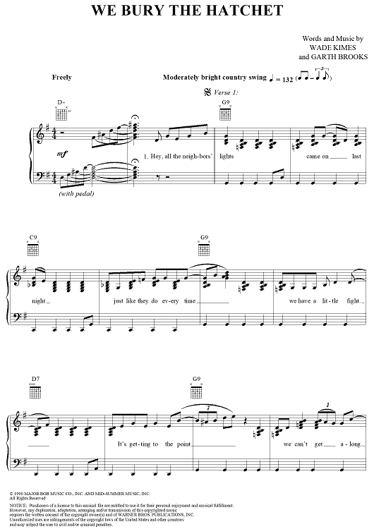 "We Bury the Hatchet" Sheet Music by Garth Brooks