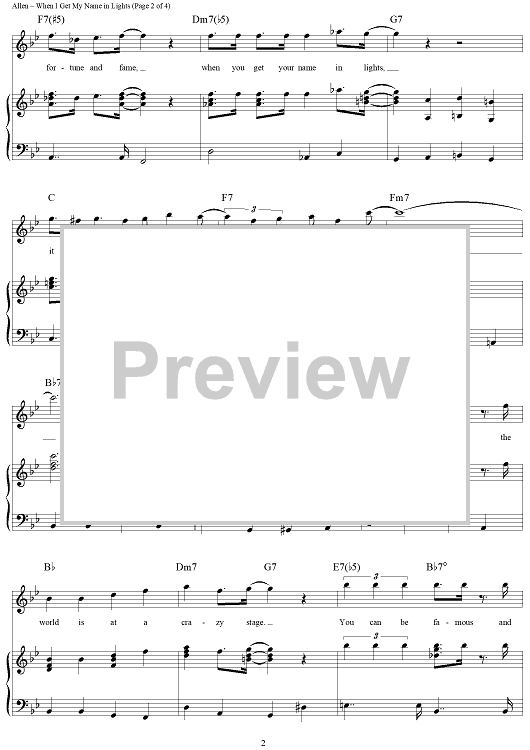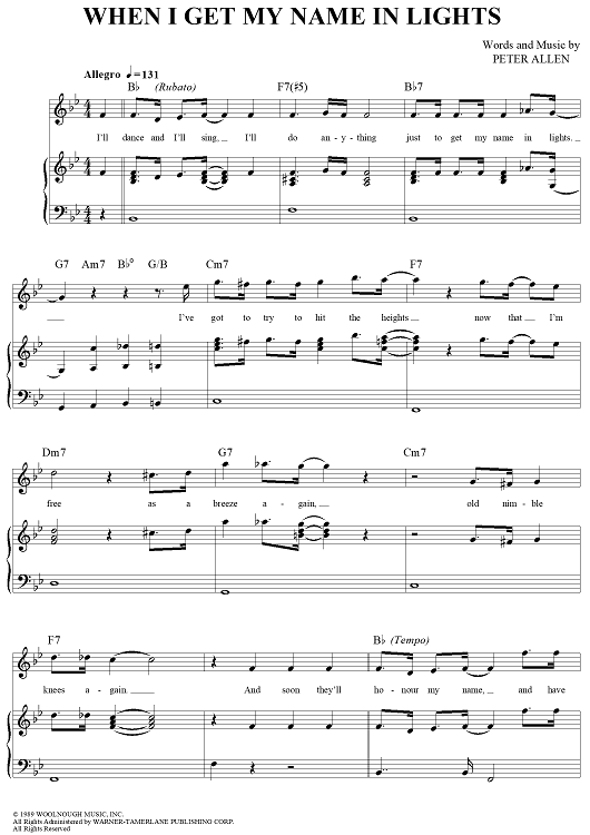 Digital Sheet Music for When I Get My Name in Lights by Peter Allen scored for Piano/Vocal/Chords; id:305435