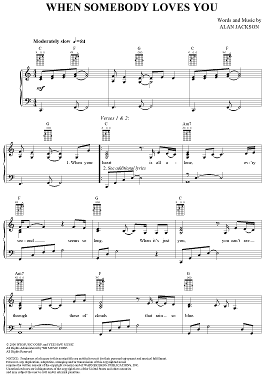 Digital Sheet Music for When Somebody Loves You by Al Jackson Jr scored for Piano/Vocal/Chords; id:285763