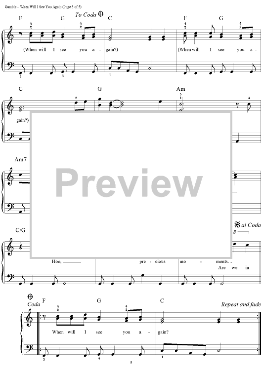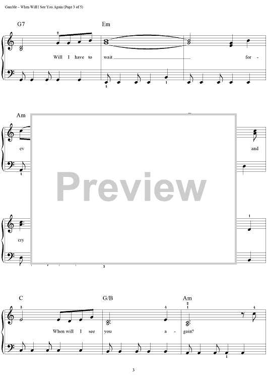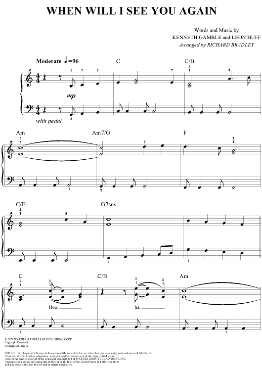 Digital Sheet Music for When Will I See You Again by Richard Bradley, Leon Huff, Kenneth Gamble, The Three Degrees scored for Easy Piano; id:289132