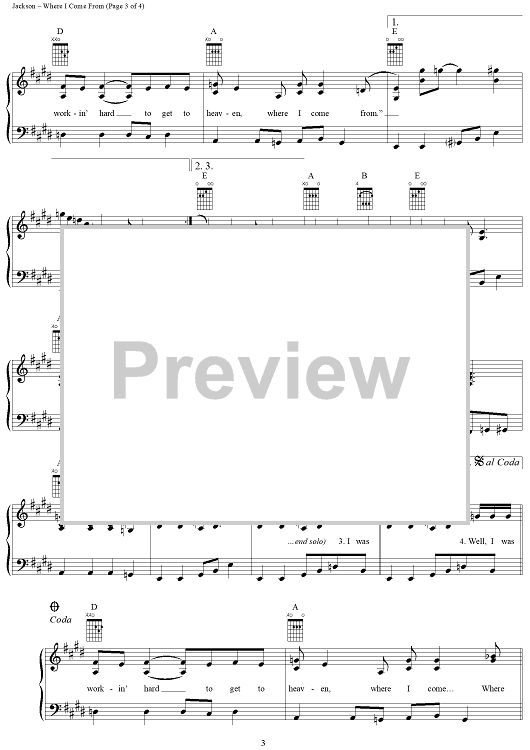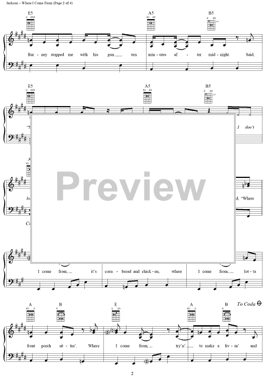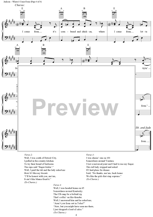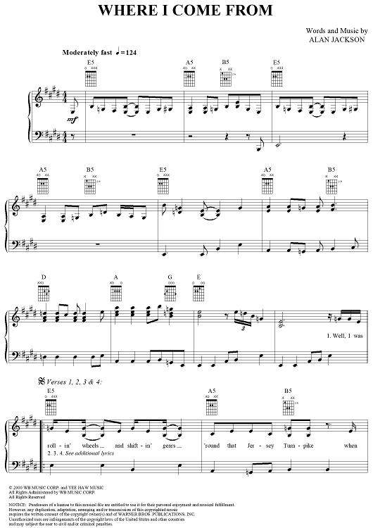 Digital Sheet Music for Where I Come From by Al Jackson Jr scored for Piano/Vocal/Chords; id:286117