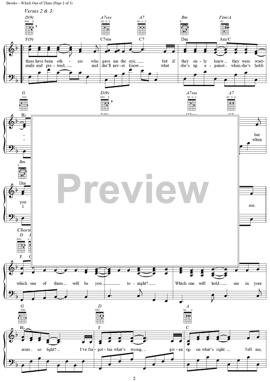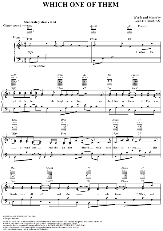 Digital Sheet Music for Which One of Them by Garth Brooks scored for Piano/Vocal/Chords; id:273789