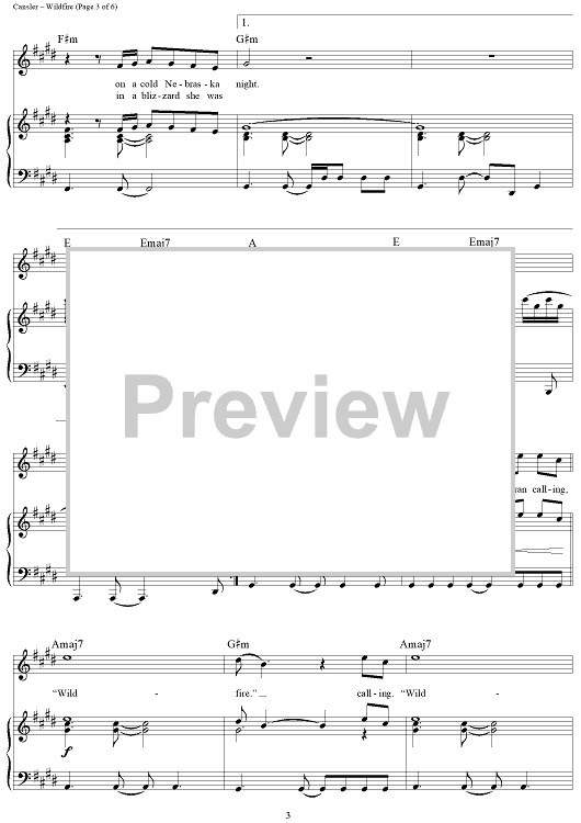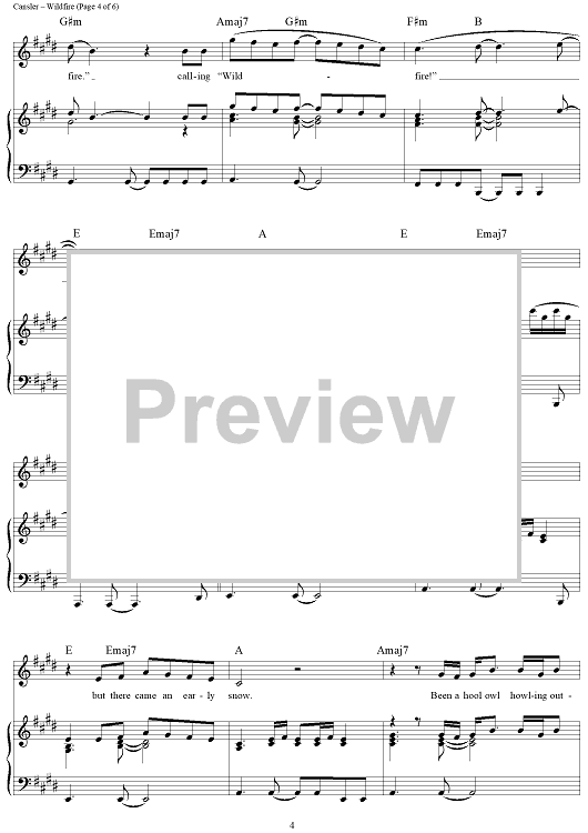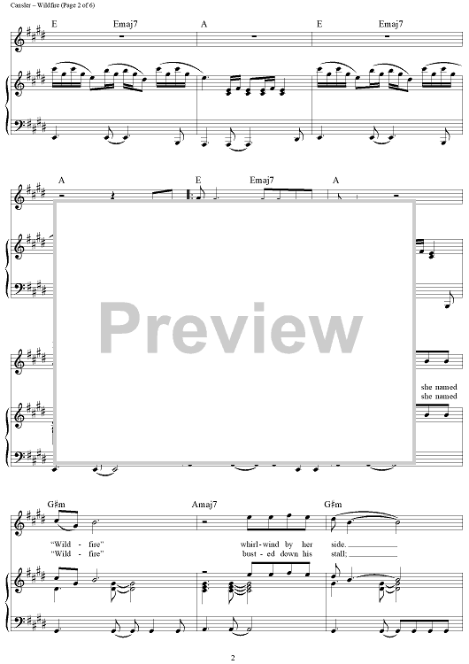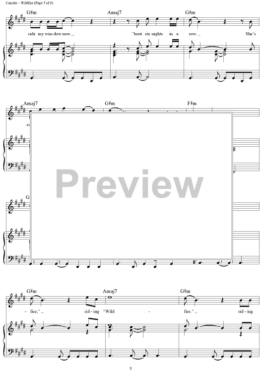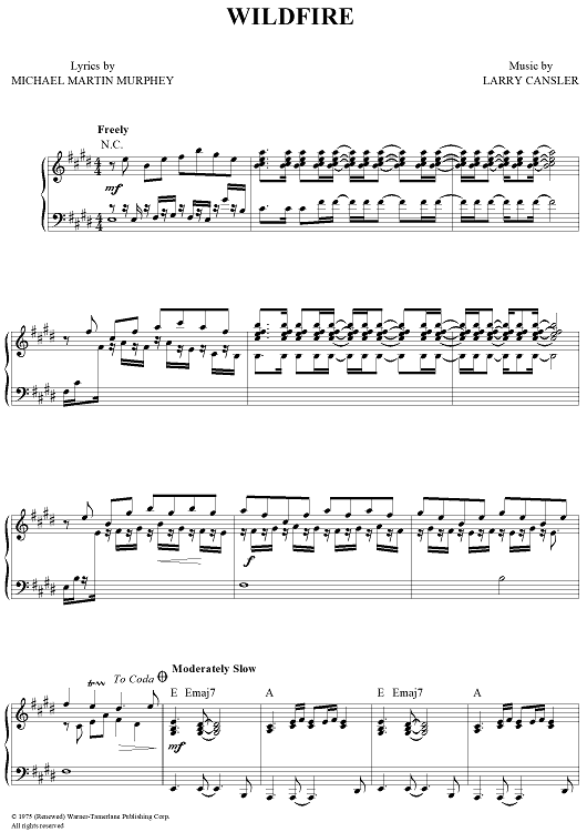 Digital Sheet Music for Wildfire by Michael Martin Murphey, Larry Cansler scored for Piano/Vocal/Chords; id:433144