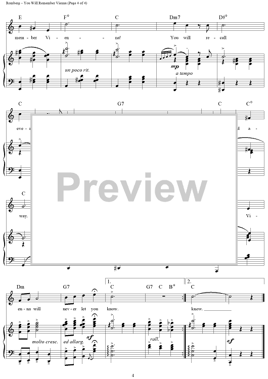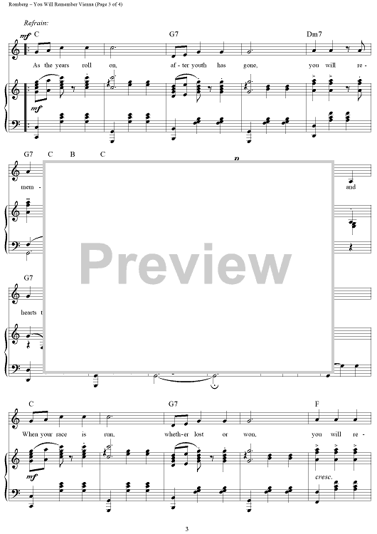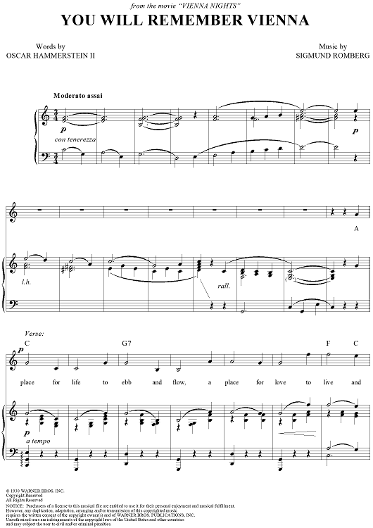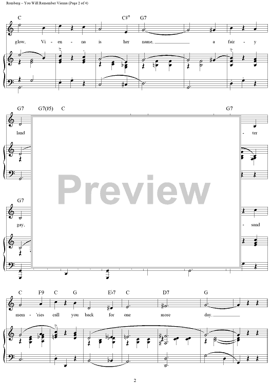 Digital Sheet Music for You Will Remember Vienna by Sigmund Romberg, Oscar Hammerstein II scored for Piano/Vocal/Chords; id:255954