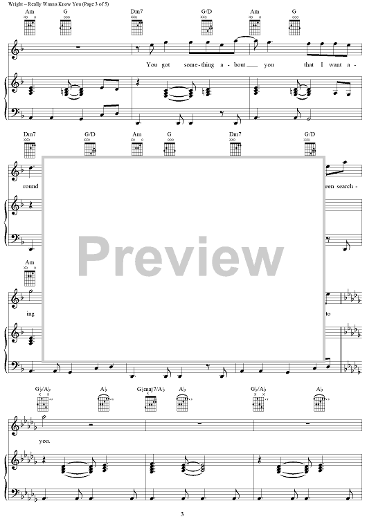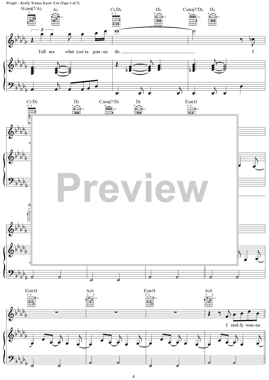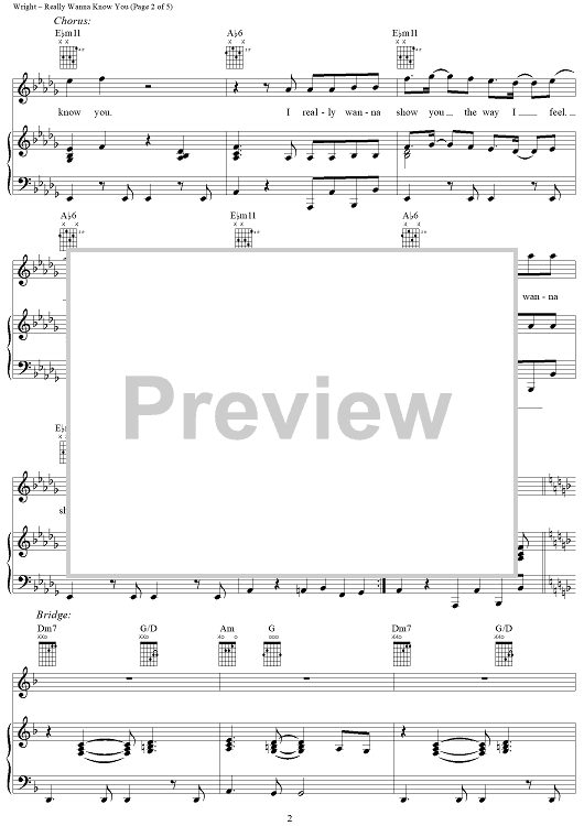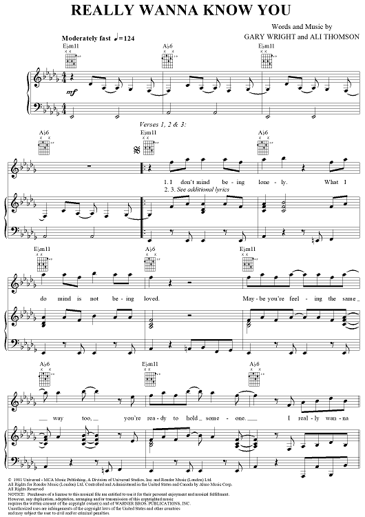 Digital Sheet Music for Really Wanna Know You by Gary Wright, Ali Thomson scored for Piano/Vocal/Chords; id:283203