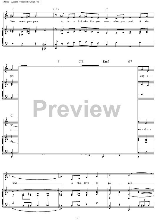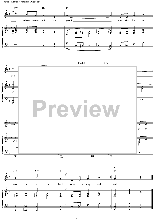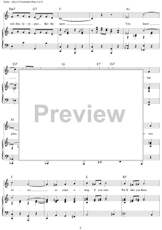 Digital Sheet Music for Alice In Wonderland by Irving Berlin scored for Piano/Vocal/Chords; id:412106