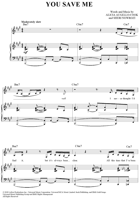 Digital Sheet Music for You Save Me by Alicia Keys, Sheri Nowrozi scored for Piano/Vocal/Chords; id:469164