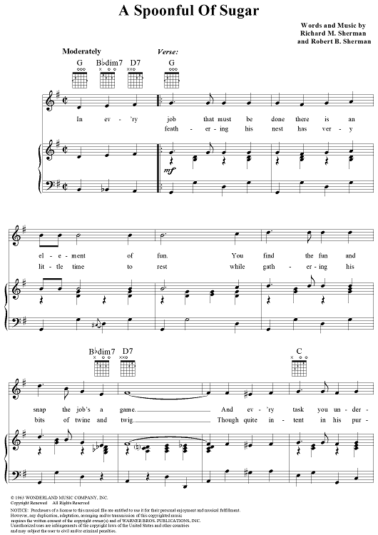 Digital Sheet Music for A Spoonful Of Sugar by Richard M. Sherman, Robert B. Sherman, Julie Andrews scored for Piano/Vocal/Chords; id:113345