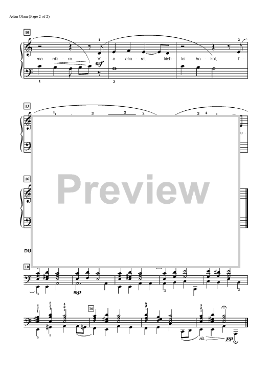 Digital Sheet Music for Adon Olam by Carol Matz, Traditional scored for Piano; id:461290