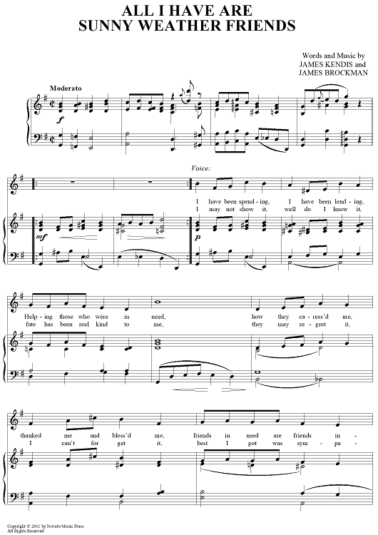 Digital Sheet Music for All I Have Are Sunny Weather Friends by James Kendis, James Brockman scored for Piano/Vocal/Chords; id:419183