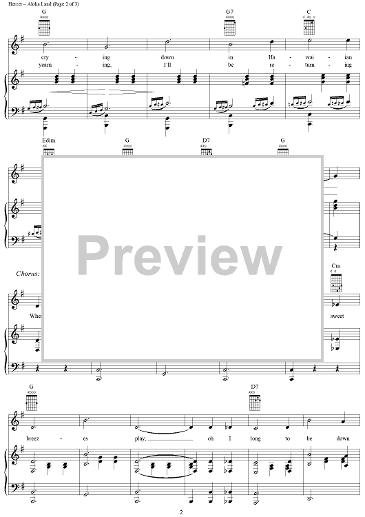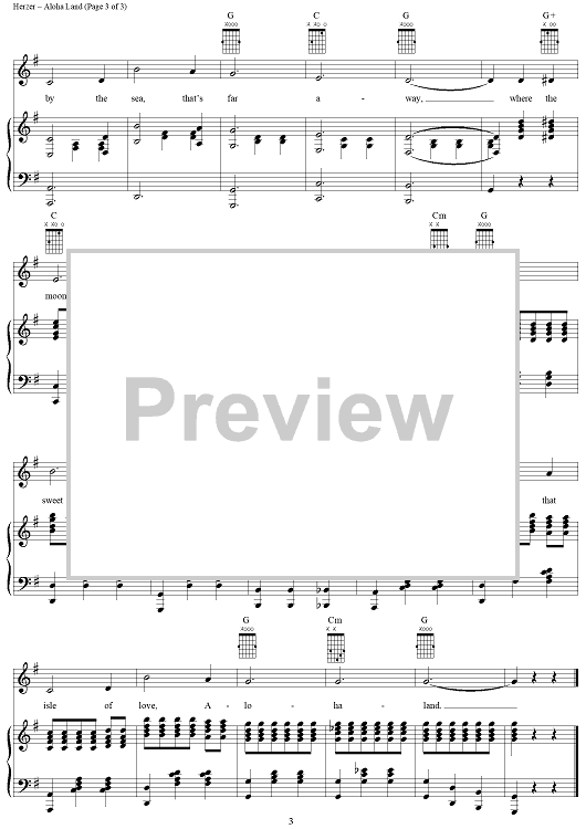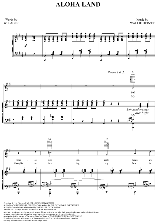 Digital Sheet Music for Aloha Land by Wallie Herzer, W. Eager scored for Piano/Vocal/Chords; id:267015
