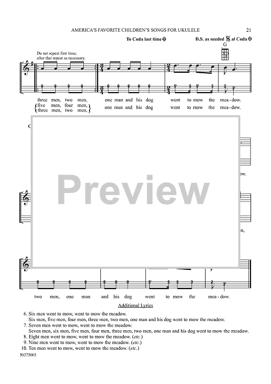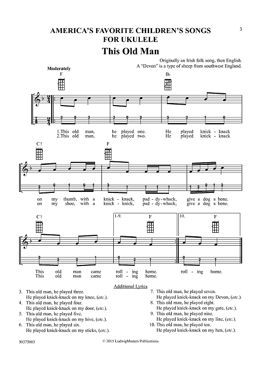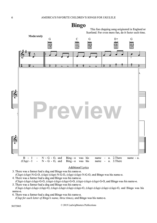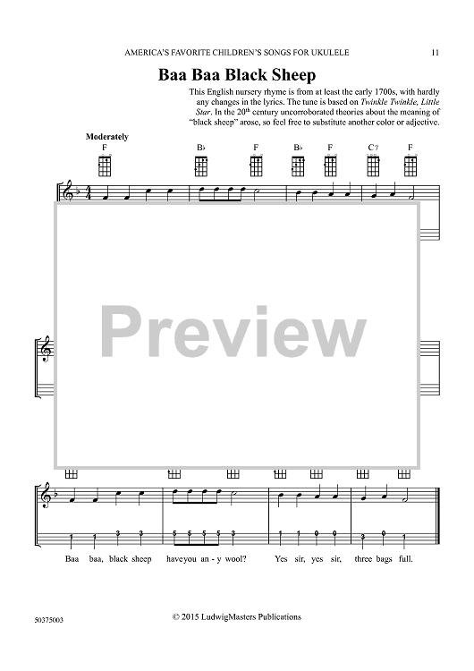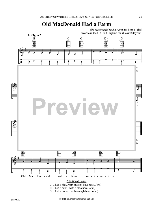 Digital Sheet Music for America's Favorite Children's Songs for Ukulele by Various, Steven L. Rosenhaus scored for Ukulele; id:461936