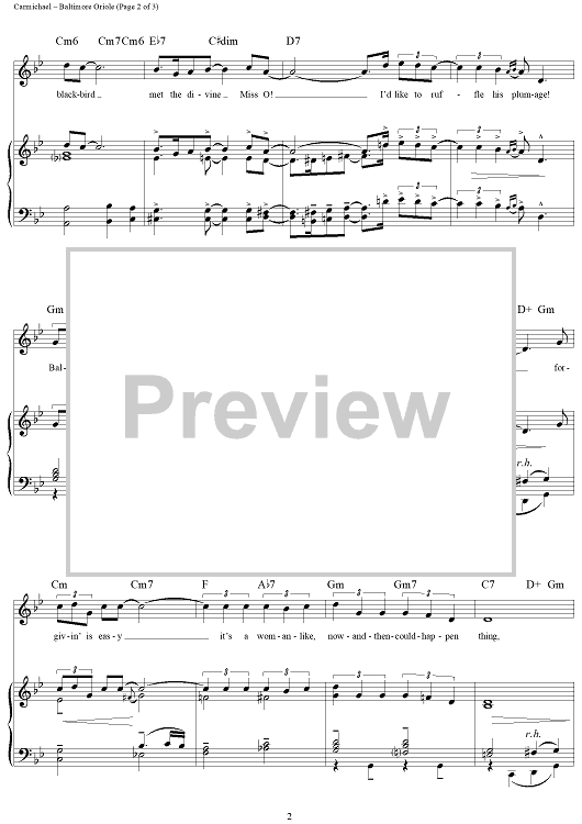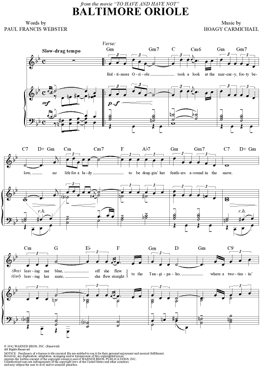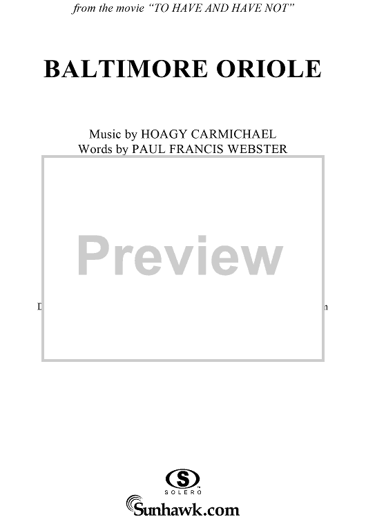 Digital Sheet Music for Baltimore Oriole by Hoagy Carmichael, Paul Francis Webster scored for Piano/Vocal/Chords; id:273450