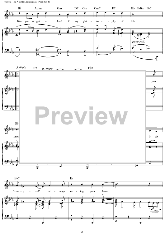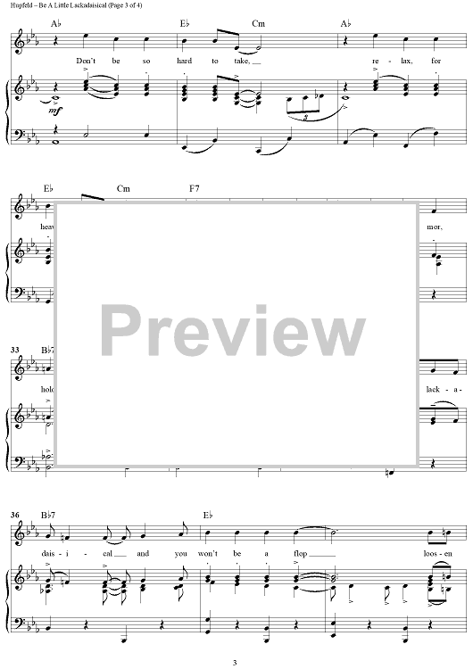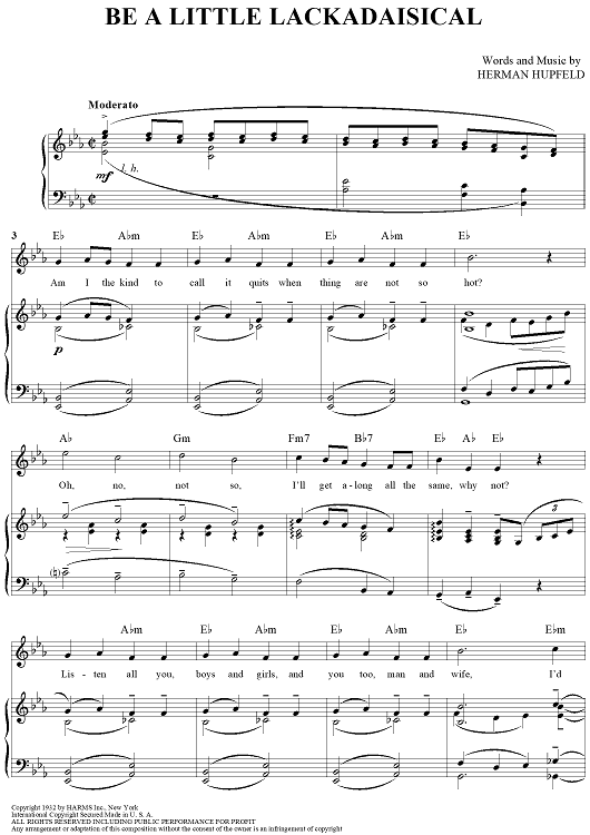 Digital Sheet Music for Be A Little Lackadaisical by Herman Hupfeld scored for Piano/Vocal/Chords; id:422797