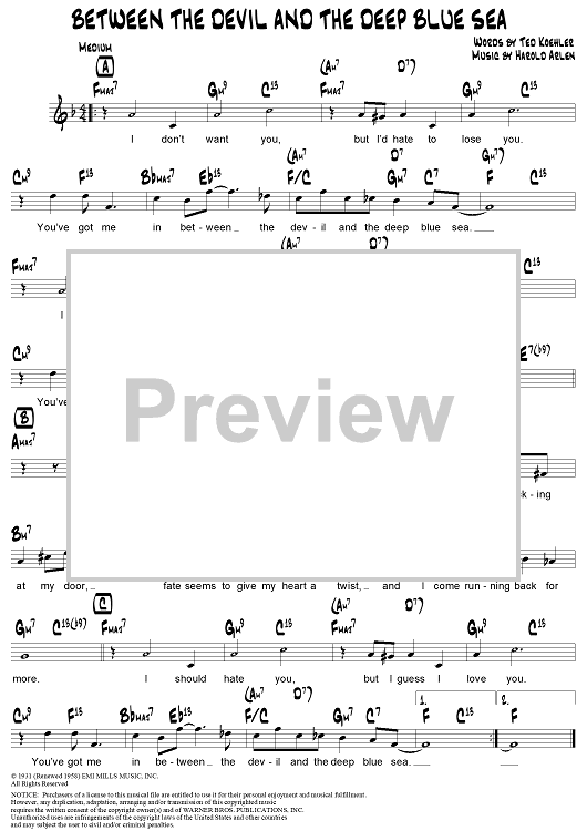 Digital Sheet Music for Between the Devil and the Deep Blue Sea by Harold Arlen, Louis Armstrong, Ted Koehler, Cab Calloway scored for Lead Sheet; id:312175