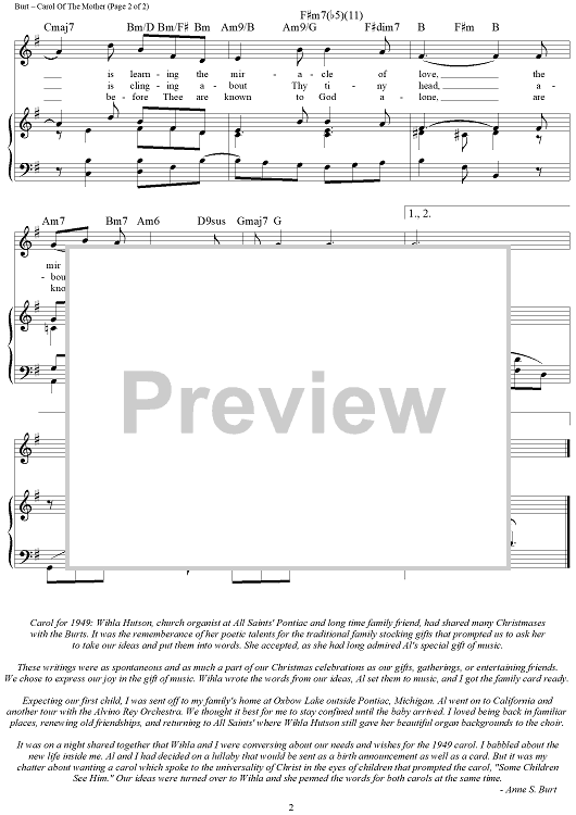 "Carol Of The Mother (Sleep, Baby Mine)" Sheet Music by Alfred Shaddick Burt