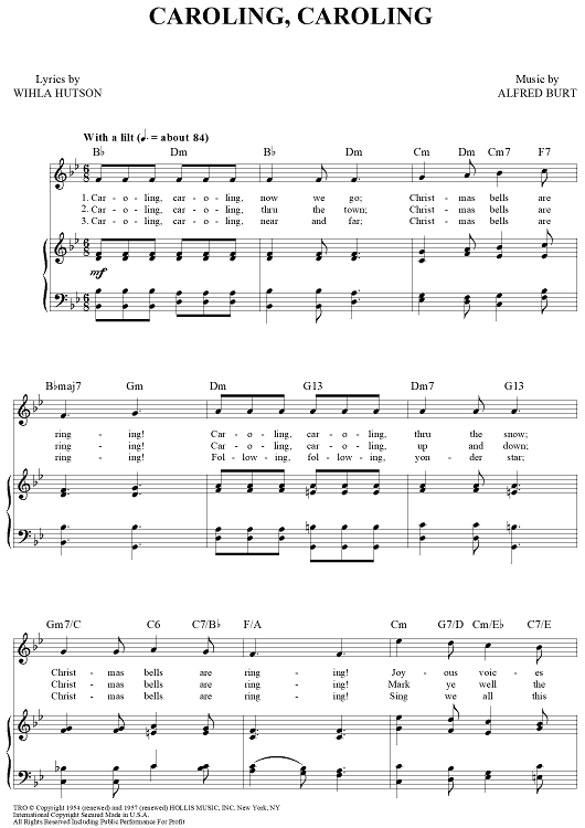 Digital Sheet Music for Caroling, Caroling by Alfred Burt, Wihla Hutson scored for Piano/Vocal/Chords; id:430327