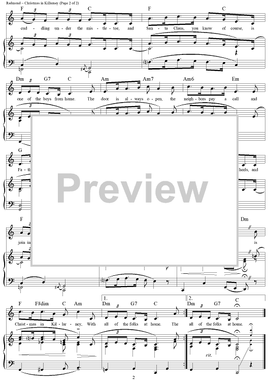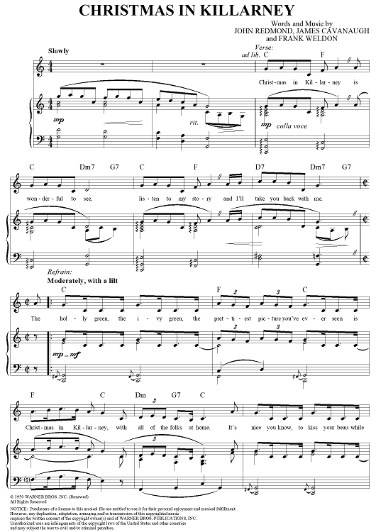 Digital Sheet Music for Christmas in Killarney by John Redmond, Frank Weldon, James Cavanaugh scored for Piano/Vocal/Chords; id:283942