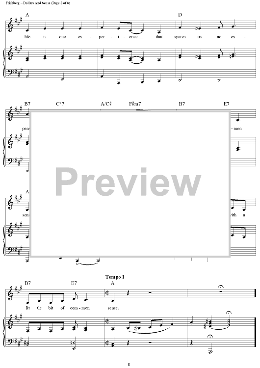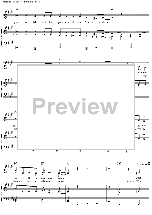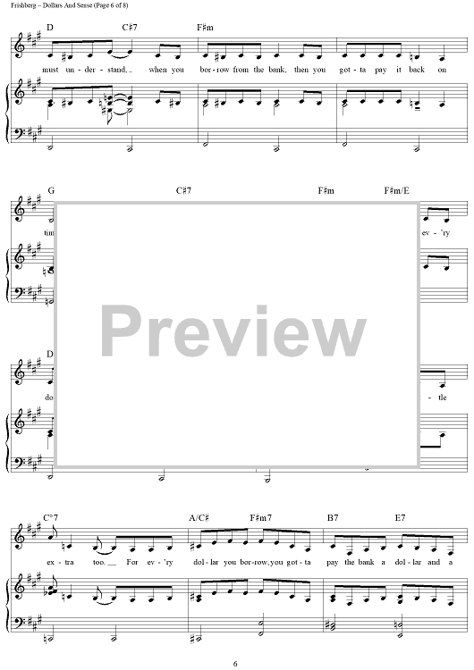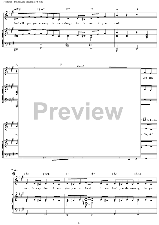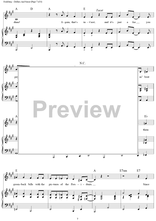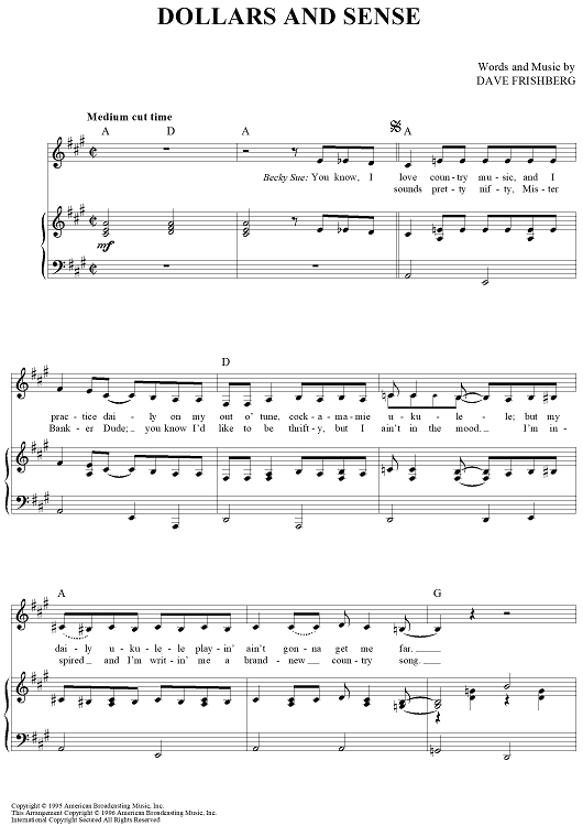 Digital Sheet Music for Dollars and Sense by Dave Frishberg scored for Piano/Vocal/Chords; id:458324