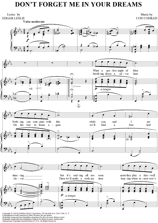"Don't Forget Me In Your Dreams" Sheet Music by Con Conrad