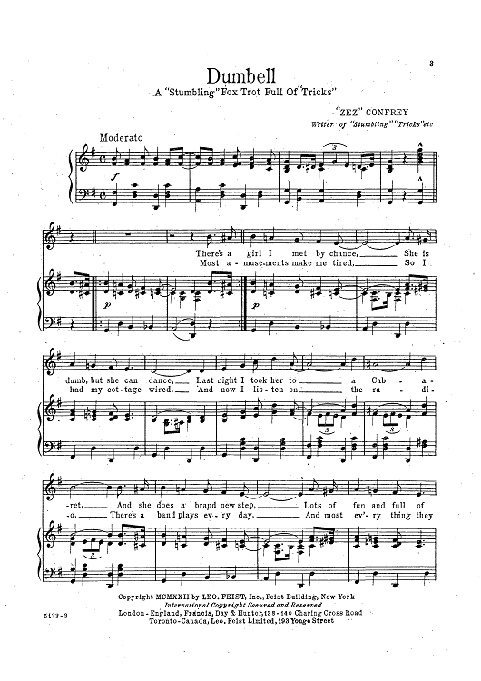 Digital Sheet Music for Dumbell by Zez Confrey scored for Piano/Vocal/Chords; id:424213