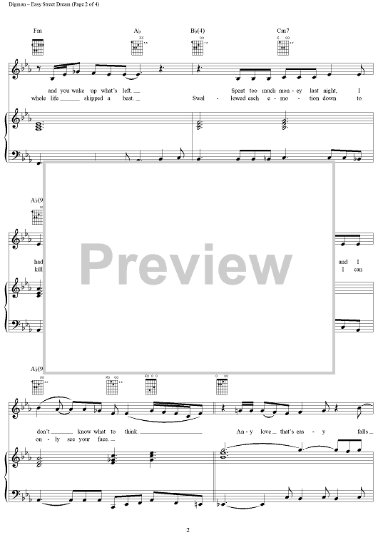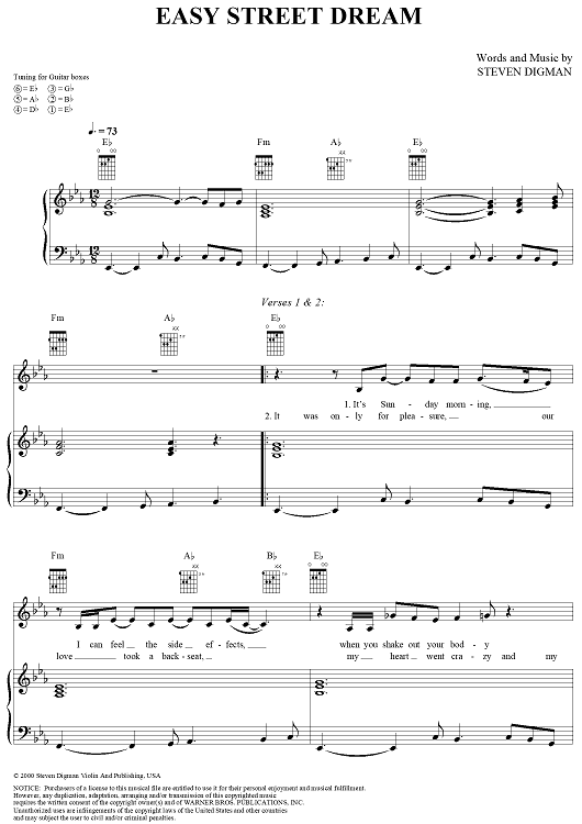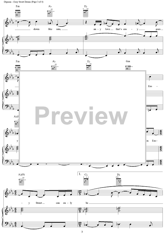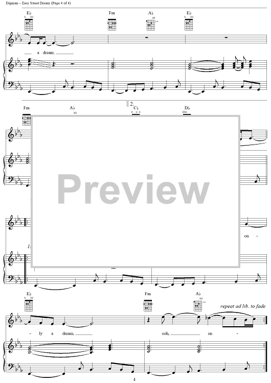 Digital Sheet Music for Easy Street Dream by Eva Cassidy, Steven Digman scored for Piano/Vocal/Chords; id:297083